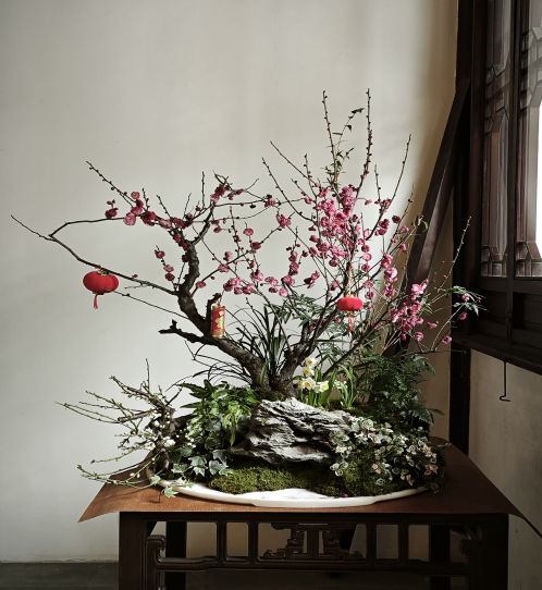 目前,参赛作品已在耦园、东园梅花市集同步展出,古典园林的雅致意境与梅花盆栽的清隽风骨相得益彰,为市民游客带来沉浸式的园林美学体验。
