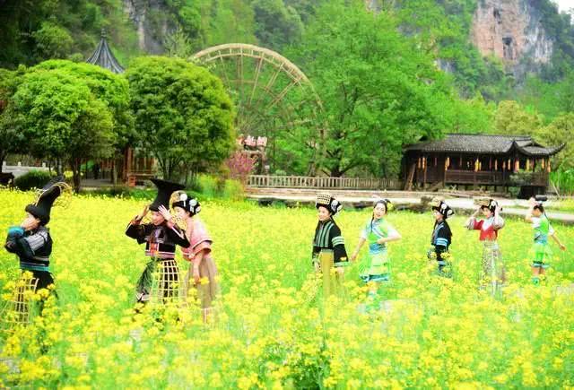 3月27日,张家界市武陵源区黄龙洞景区恢复对外开放,景区员工身着土苗服装在百花盛开的田园牧歌广场载歌载舞,欢迎前来踏春探奇的各地游客。据了解,黄龙洞为全国首家恢复开放的旅游溶洞,武陵源风景名胜区所有自然景区景点自此也全面进入春游模式。
