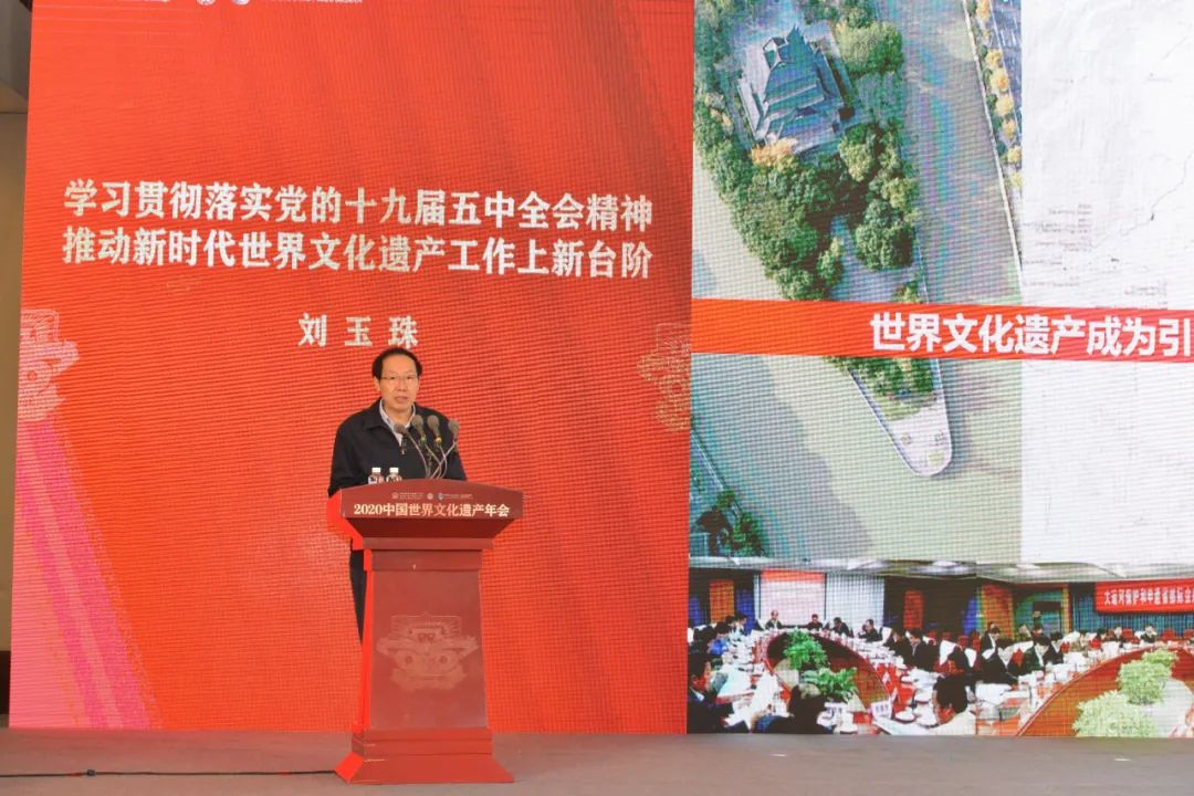 11月4日,2020中国世界文化遗产年会暨城市市长论坛在浙江杭州良渚古城遗址召开。本次会议由中国文化遗产研究院、浙江省文物局、杭州市人民政府主办,杭州市园林文物局、余杭区人民政府、杭州良渚遗址管理区管理委员会承办。国家文物局局长刘玉珠出席会议并作主旨发言。