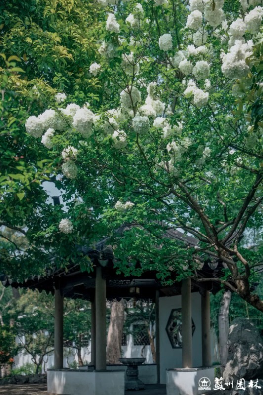 怡园小沧浪旁,木绣球依亭而立
